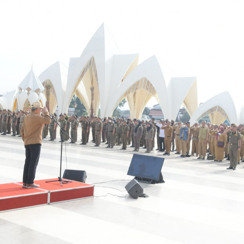 Sekda Jabar Setiawan Wangsaatmaja saat memimpin apel evaluasi tingkat Setda Jabar di Masjid Raya Al Jabbar, Kota Bandung, Senin (9/1/2023). (Foto: Biro Adpim Jabar)